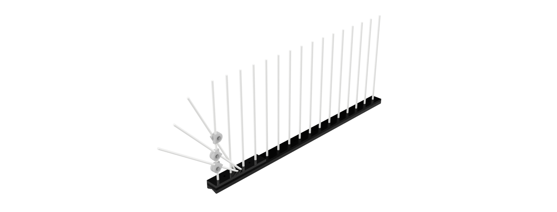 Add to List12" fiberglass spike strip with additional angled spikes one one end for 24" coverage, for installation onto flat structures